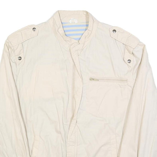 Mens White Cotton Blend Casual Zip Jacket M Plain Lightweight Comfort