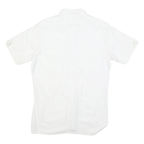 Mens White Short Sleeve Cotton Blend Shirt M Casual Button Pocket