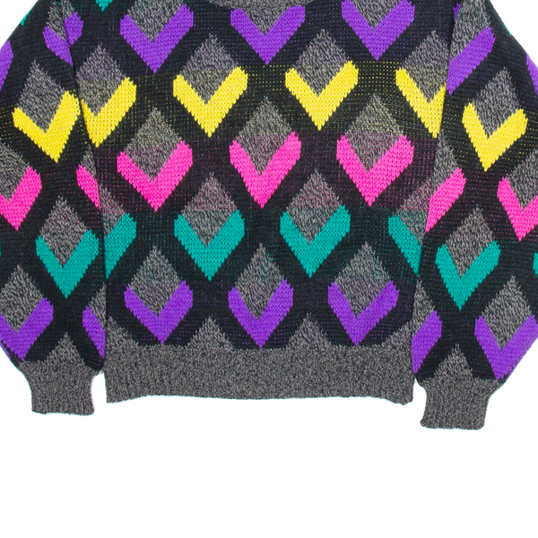 MISTER NOAH Womens Jumper Grey Argyle Tight Knit S