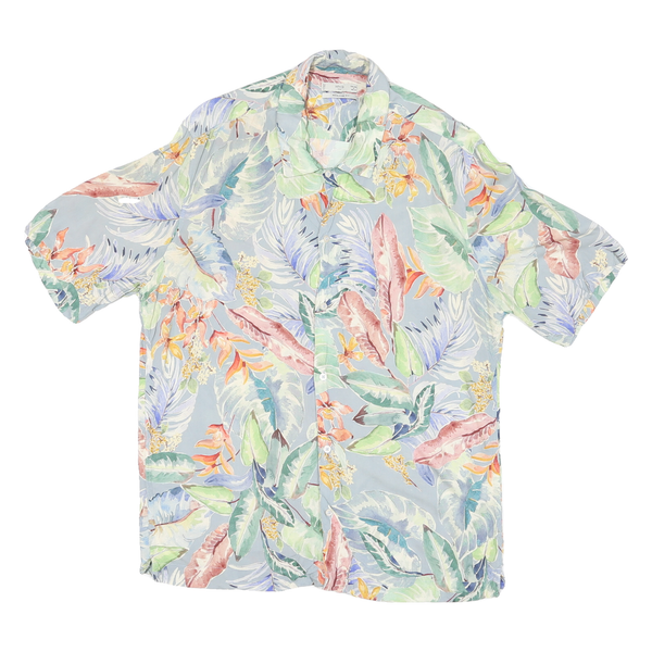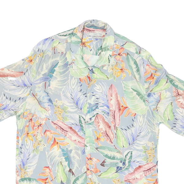 MNG Mens Blue Floral Shirt M Cotton Blend Summer Tropical Pattern