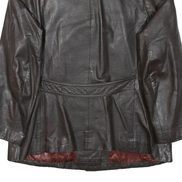 MOKIBA Womens Brown Leather Jacket L Button Closure Classic Fit Plain