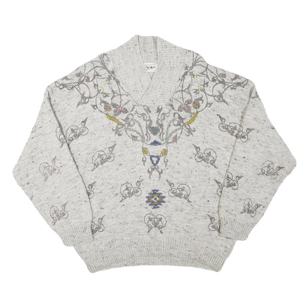 Nanibon mens cream patterned wool blend jumper roll neck basic knit xl vintage