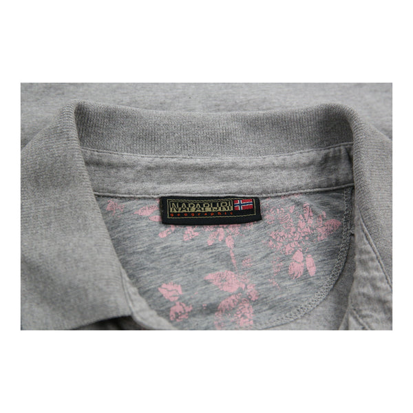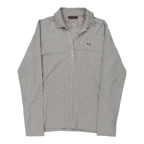 Napapijri Long Sleeve Polo Shirt - Large Grey Cotton