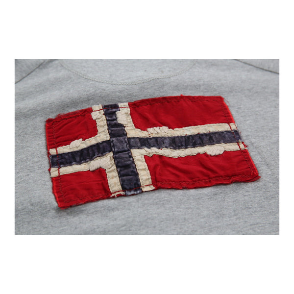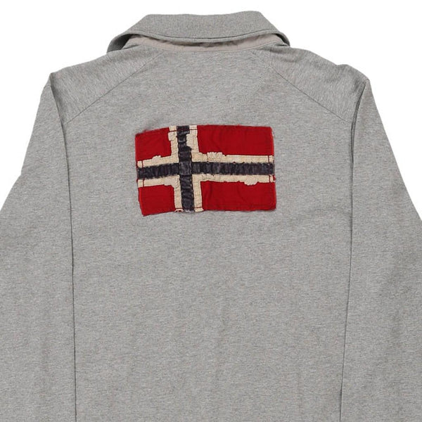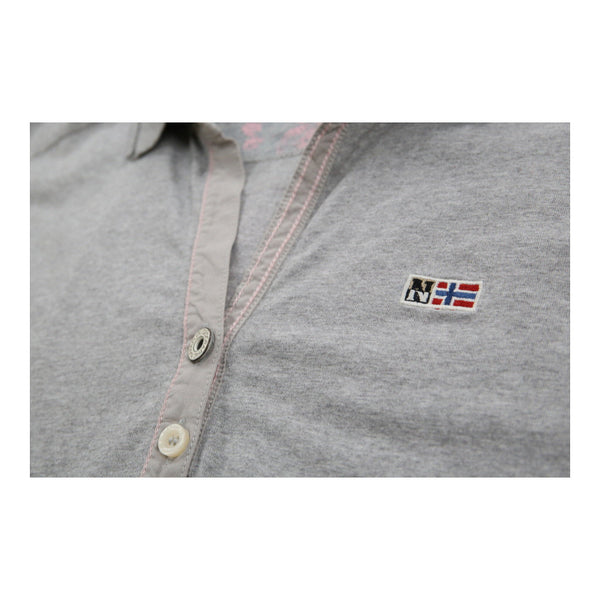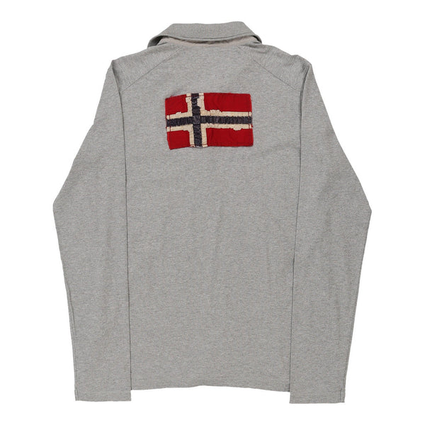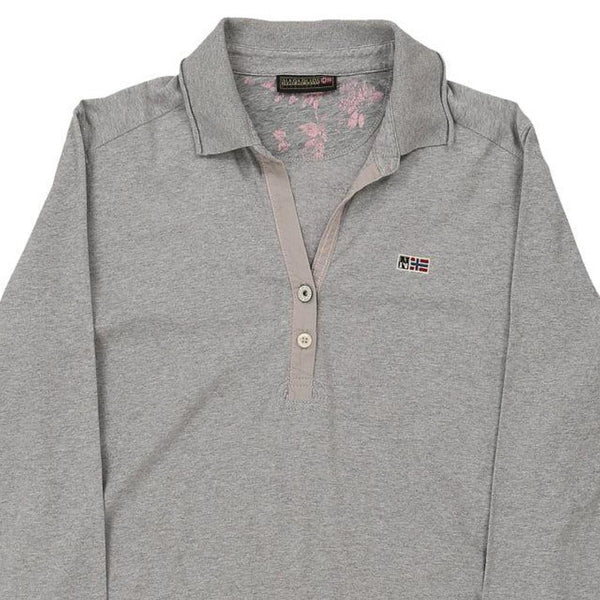 Vintage grey Napapijri long sleeve polo shirt, fits large.