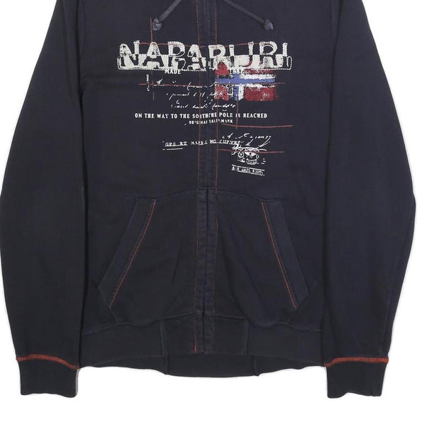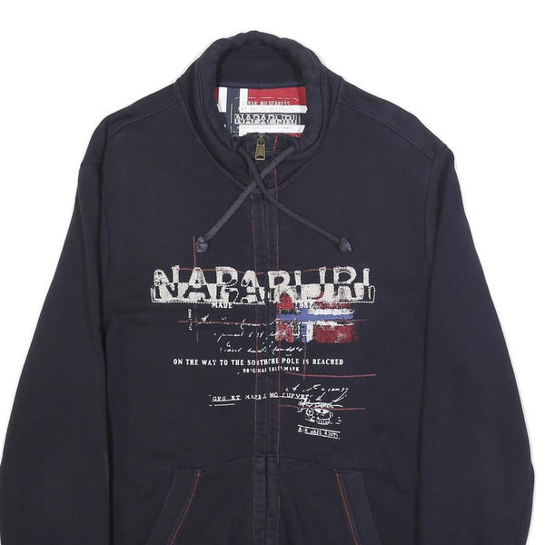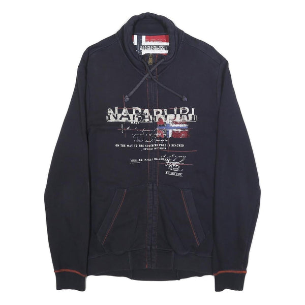 NAPAPIJRI Mens Navy Blue Cotton Zip Jacket L Logo Print Casual Outerwear