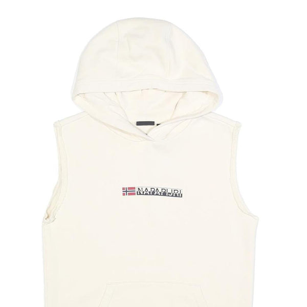 NAPAPIJRI Womens White Sleeveless Hoodie S Cotton Blend Casual Sleeveless Hooded