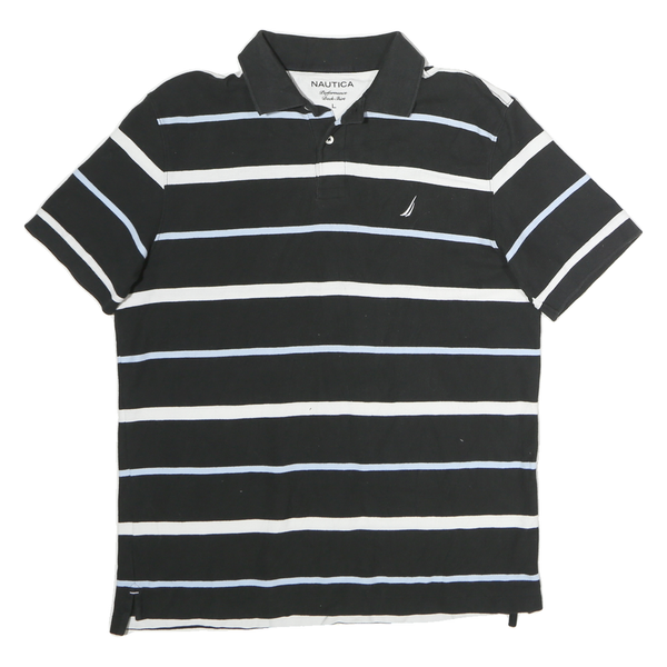 NAUTICA Mens Black & White Striped Short Sleeve Polo Shirt L Cotton Casual