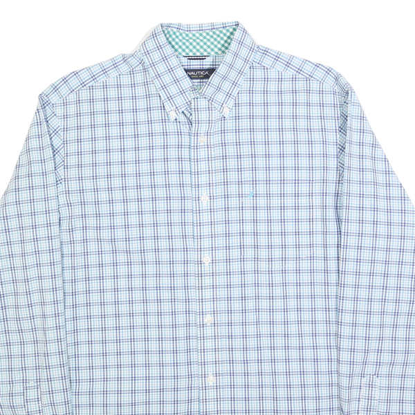 NAUTICA Mens Blue Check Shirt M Cotton Blend Button-Down Collar Long Sleeve