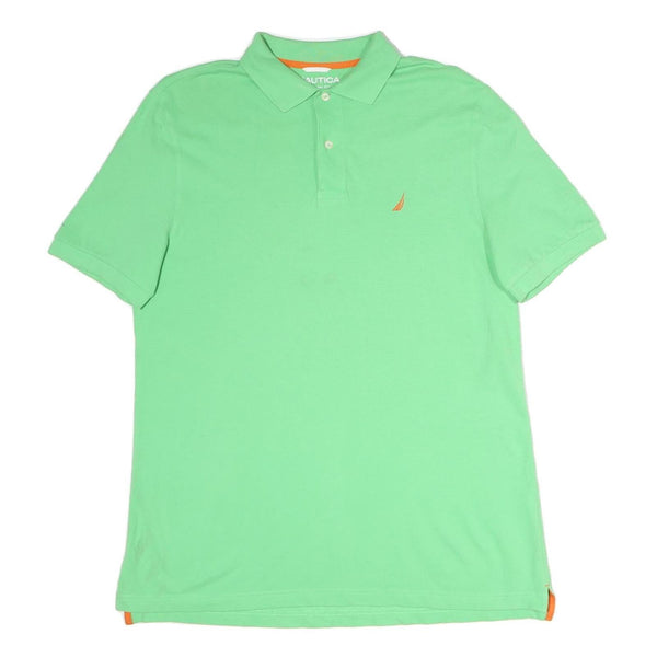 NAUTICA Mens Green & Orange Short Sleeve Plain L Cotton Polo Shirt Casual Summer