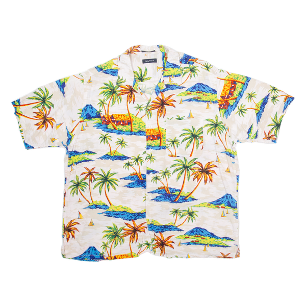 NAUTICA Mens Hawaiian Shirt White Crazy Pattern L