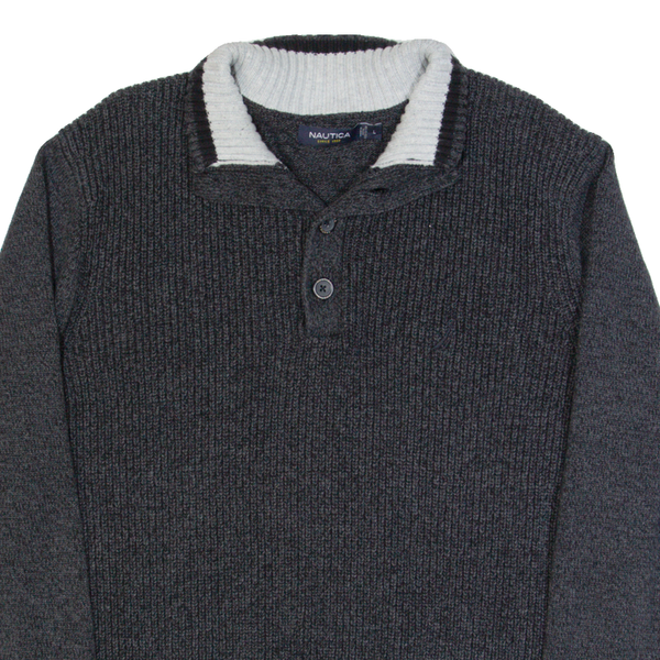 NAUTICA Mens Jumper Grey Button Neck Tight Knit L