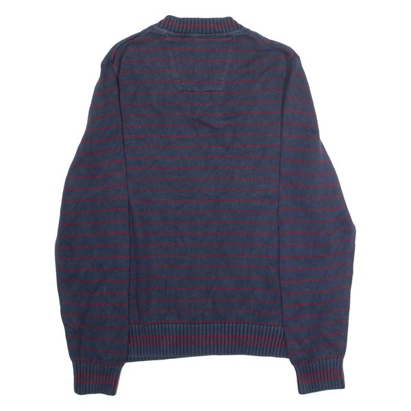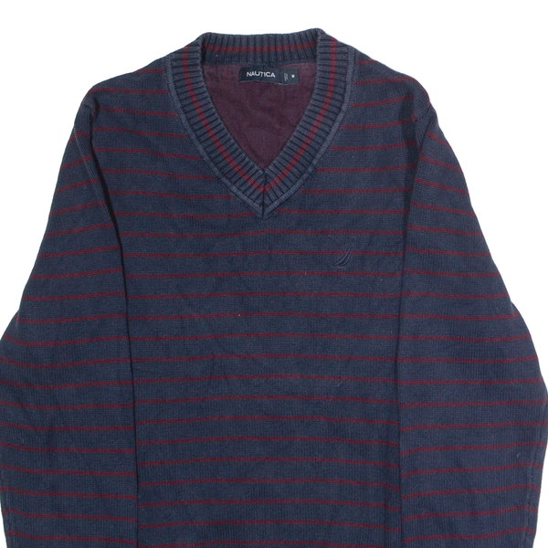 NAUTICA Mens Patterned Jumper Blue Striped V-Neck Chunky Knit M