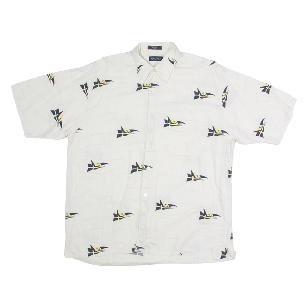 NAUTICA Mens Shirt White Crazy Pattern M