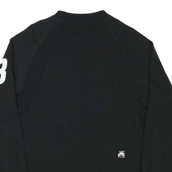 This Nike Mens sweatshirt is crafted in solid black with a bold white NIKE logo printed prominently across the chest, creating a sleek and sporty aesthetic. The back is plain with a small Nike SB logo patch near the hem and a large white number 28 printed on one sleeve, adding subtle design interest without overwhelming the minimalistic look.