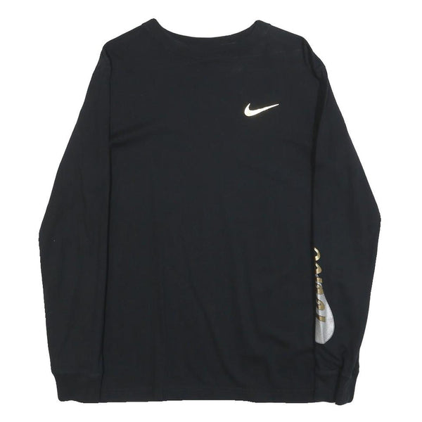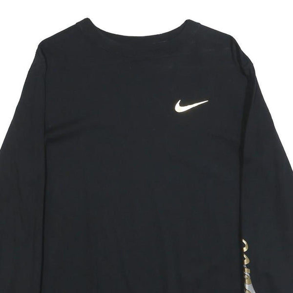 NIKE Mens Black Long Sleeve Crew Neck Graphic T-Shirt XS Cotton Blend