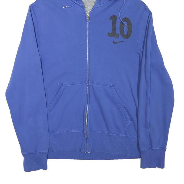 NIKE Mens Blue Zip Up Hoodie M 10 Printed Logo Drawstring Hood Casual Wear