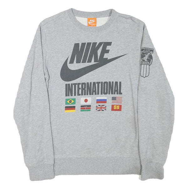 NIKE Mens Grey International Crew Neck S Cotton Blend Sweatshirt