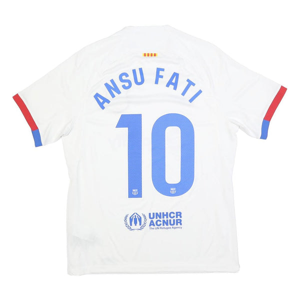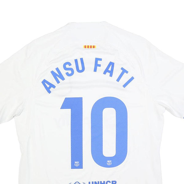 NIKE Mens White Barcelona Ansu Fati Football Shirt M Short Sleeve Crew Neck
