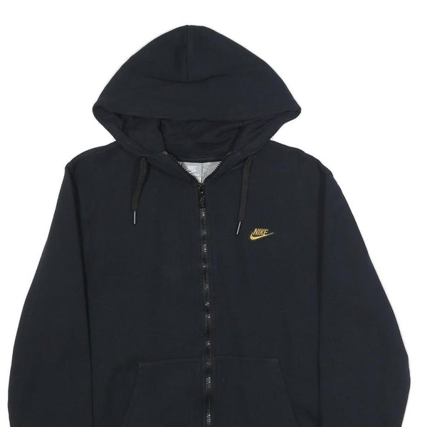 NIKE Womens Black Hoodie M Zip Up Gold Logo Casual Cotton Blend