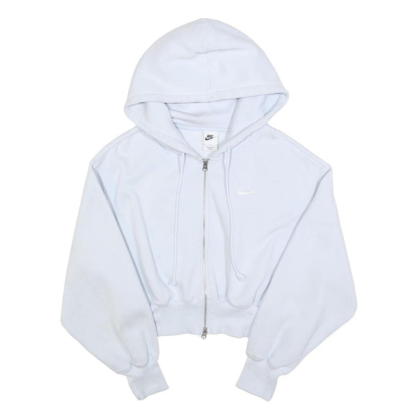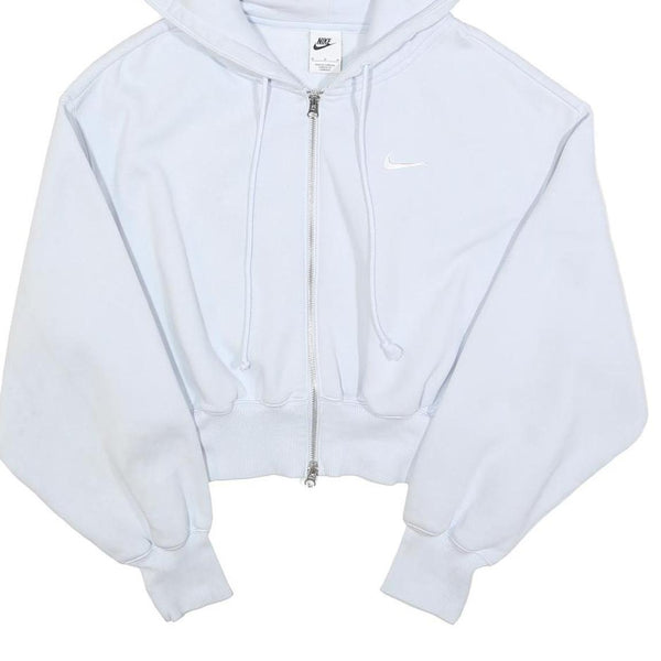 NIKE Womens White Full Zip Hoodie M Cotton Blend Cropped Casual Sweater