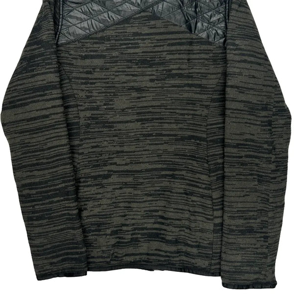 Black And Grey Fleece Jacket With Quilted Pattern On Shoulders