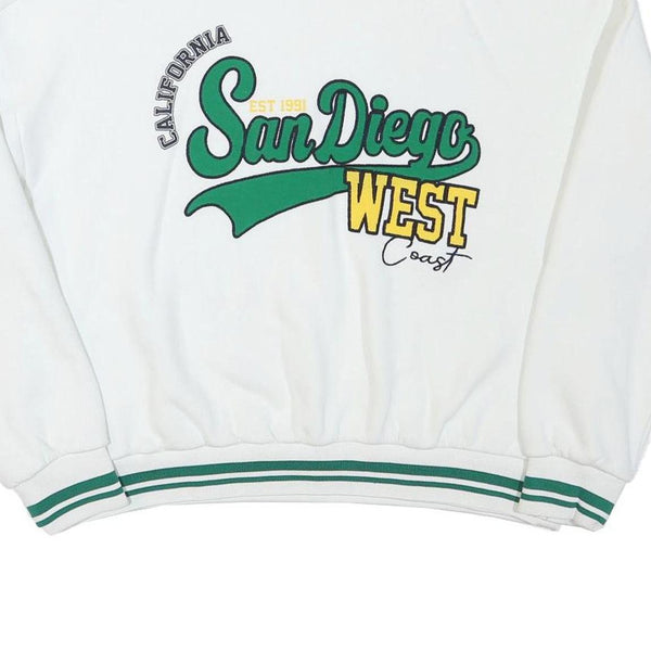 OLE Womens White San Diego West Sweatshirt Crew Neck L Cotton Blend Casual