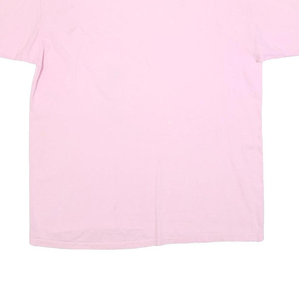 This ONEITA mens T-shirt features a soft pink colour throughout the fabric, with a small, subtle graphic on the left chest that reads "Rancho La Puerta" accompanied by a simple sun and abstract design in orange and peach hues. The T-shirt offers a classic casual look with its short sleeves and crew neck style.