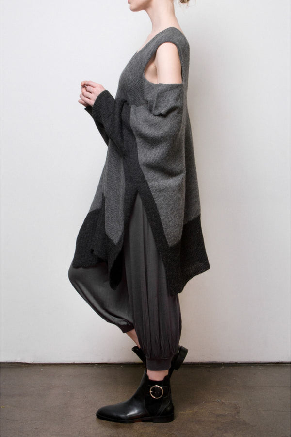 This alpaca slash tunic is hand made by Bolivian artisans. Sourcing the highest quality alpaca yarn to create a hand loomed luxurious knit that is consciously made so you can feel good about wearing it. We reach for these luxury pieces on a regular basis since they're part of our staples, and we know you will too.