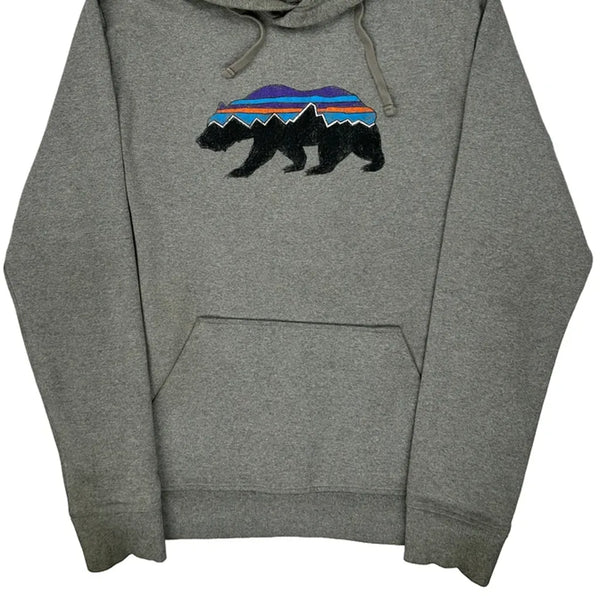 Gray Hoodie With Embroidered Bear Graphic On Front