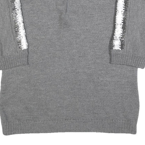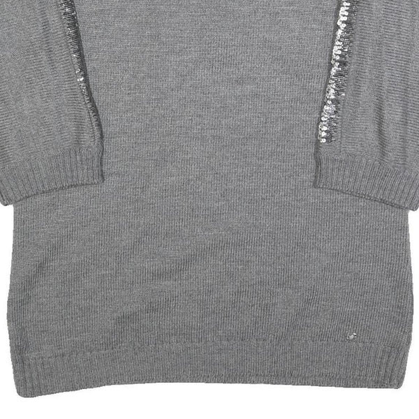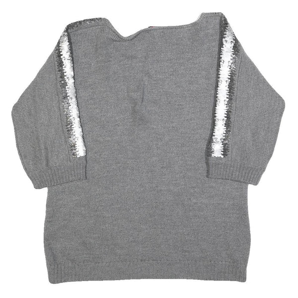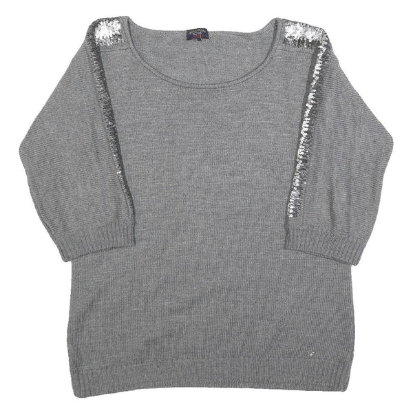 PAUL & SHARK Womens Grey Wool Plain Jumper Scoop Neck Basic Knit XL Sequined