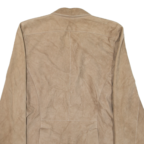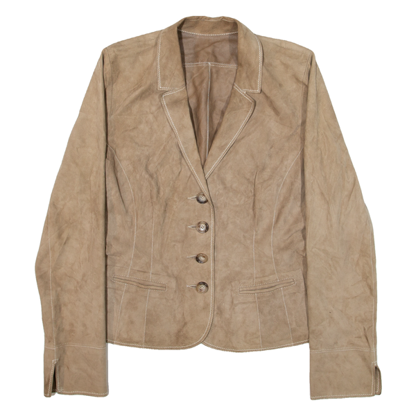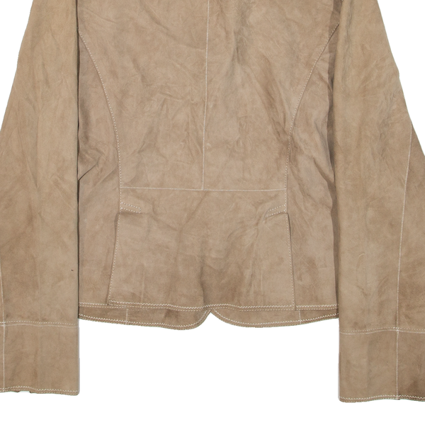 PEARLS Womens Blazer Jacket Beige Leather Suede S