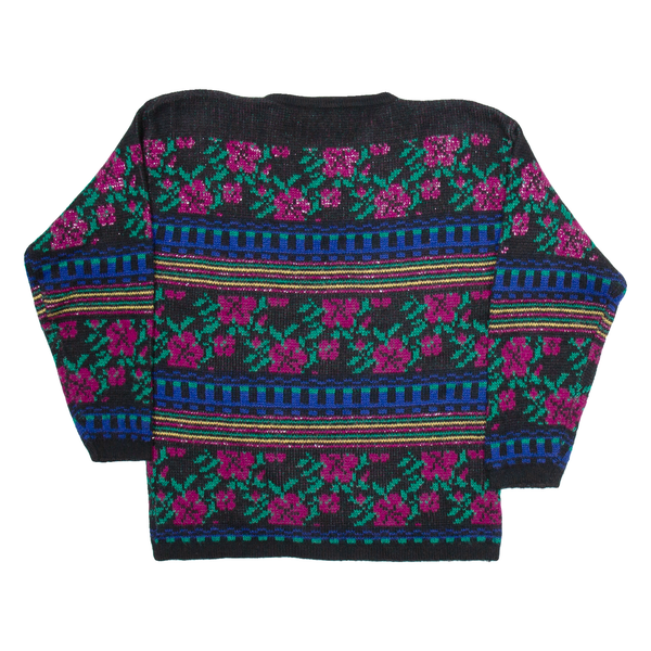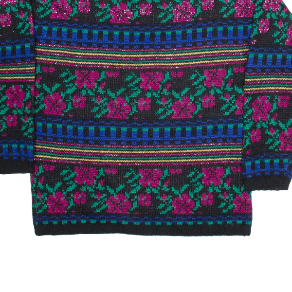 PETITES Womens Patterned Jumper Black Floral Tight Knit S