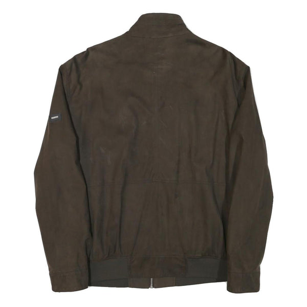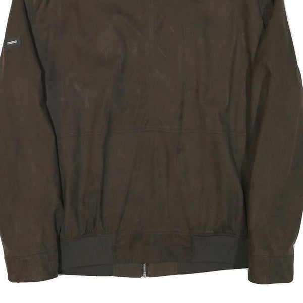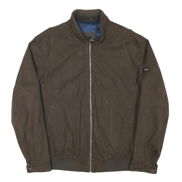 PIERRE CARDIN Mens Brown Classic Jacket L Polyester Blend Plain Zip Long Sleeve