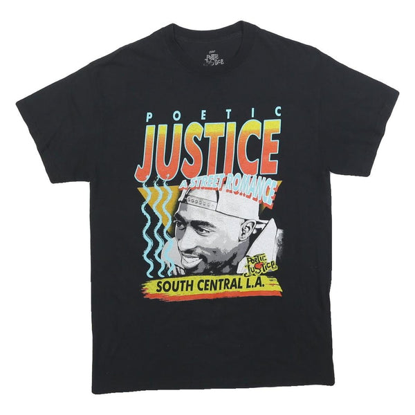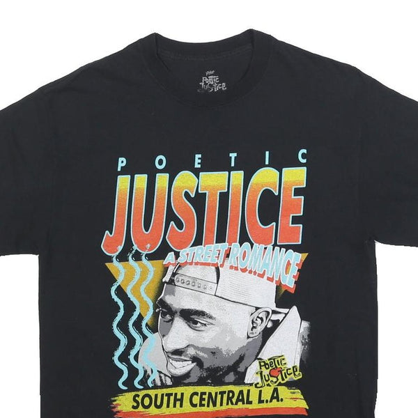 POETIC JUSTICE Mens Black Graphic T-Shirt M Short Sleeve Crew Neck Streetwear
