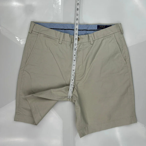 Polo By Ralph Lauren Chino Shorts, fit a 36″ Waist and 9″ inseam.