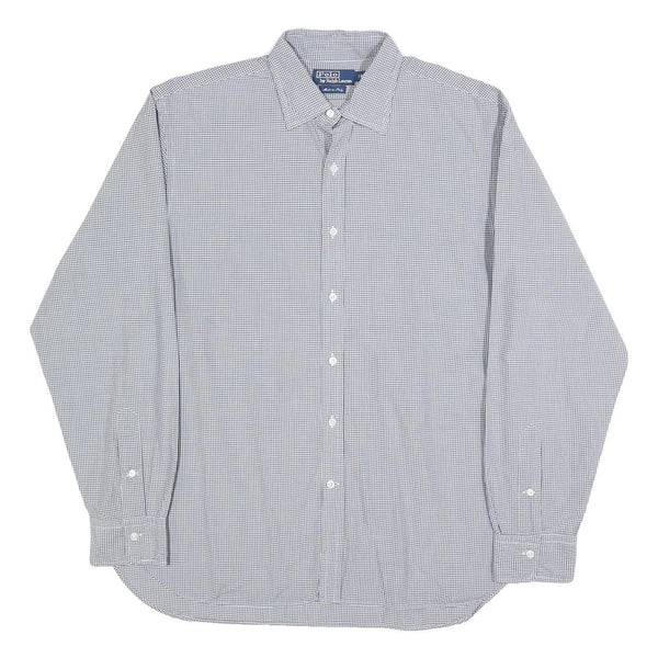 POLO RALPH LAUREN Mens Blue & White Check Shirt XL Classic Button Collar Long