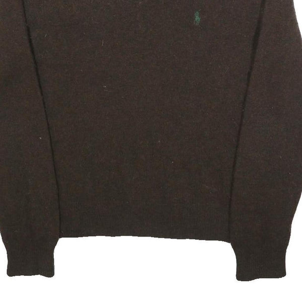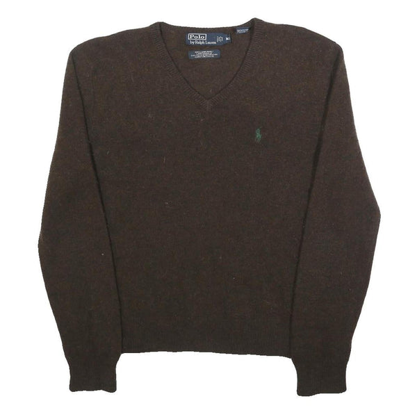 POLO RALPH LAUREN Mens Brown Wool Plain V-Neck Basic Knit Jumper M Classic