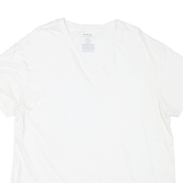 POLO RALPH LAUREN Mens White Classic T-Shirt L Short Sleeve V-Neck Cotton Blend