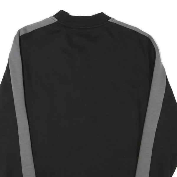 Crafted from a cotton blend fabric, this jacket offers a comfortable and breathable fit, making it ideal for casual wear or light workouts. It has a regular cut with long sleeves, elasticated cuffs, and hem for a relaxed yet secure fit. The back is plain black with the same grey sleeve stripes for a coordinated look.