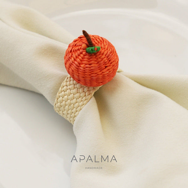 Pumpkin Napkin Ring made of iraca palm - Fall Tabletop Decor