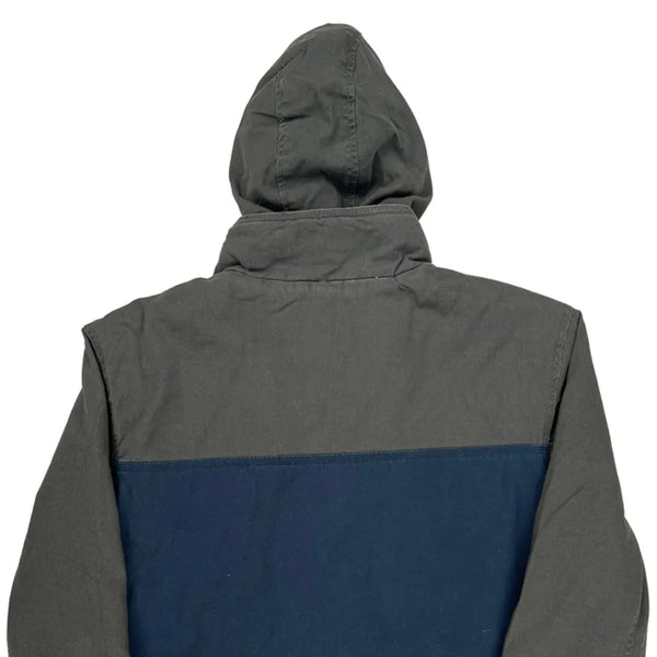 Gray And Blue Color Block Jacket With Hood