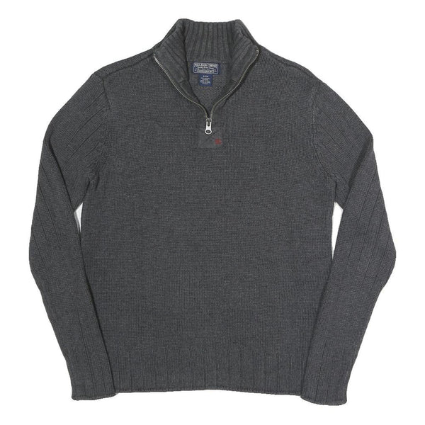 RALPH LAUREN POLO JEANS COMPANY Mens Grey Plain Cotton Jumper Pullover Cable