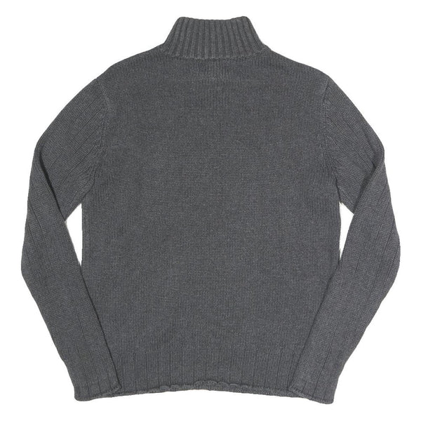 This Ralph Lauren Polo Jeans Company mens jumper comes in a versatile grey colour. It features a half-zip pullover style with a ribbed stand-up collar and ribbed cuffs and hem. The jumper has subtle cable knit detailing along the sleeves, adding gentle texture to the design.