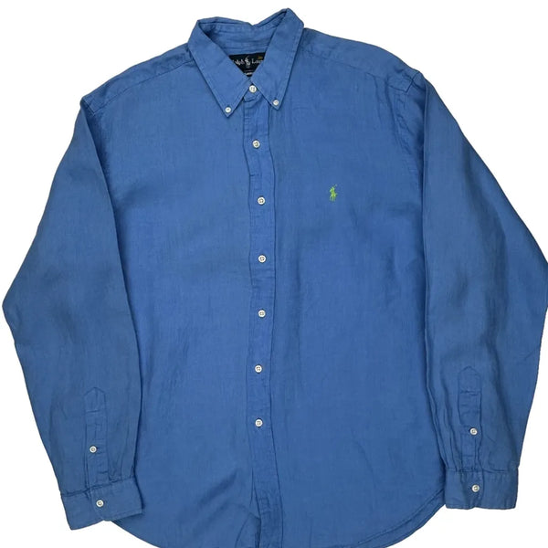 Blue Ralph Lauren Shirt With Green Logo Embroidery