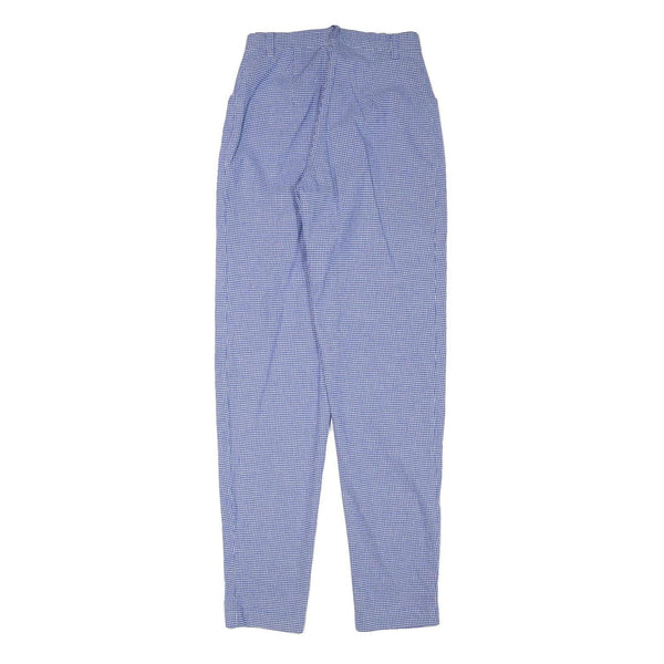 These womens trousers by RED GREEN feature a fine blue and white micro-check pattern creating a subtle textured look. The fabric is a sturdy cotton blend that offers comfort and breathability for all-day wear. They have a high waist with belt loops and a front zip closure finished with a metallic button.