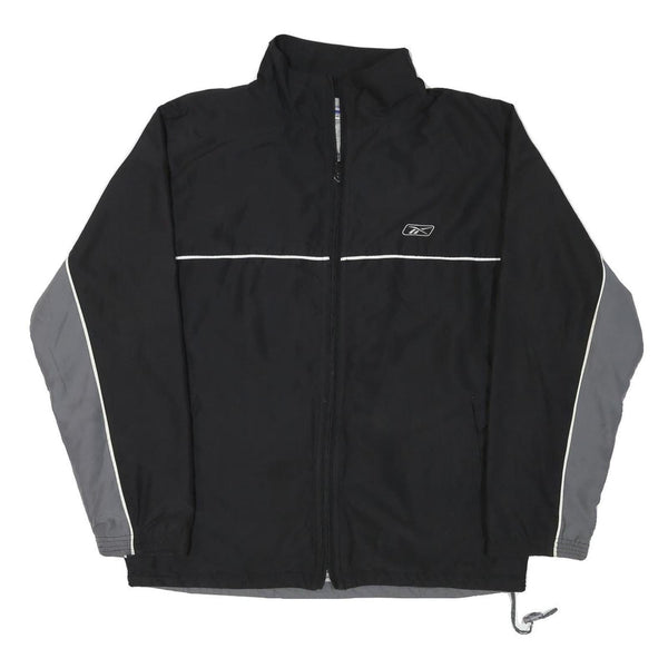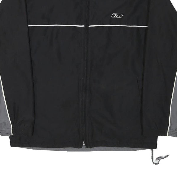 REEBOK Mens Black & Grey Zip Front Track Jacket M Polyester Plain Sportswear