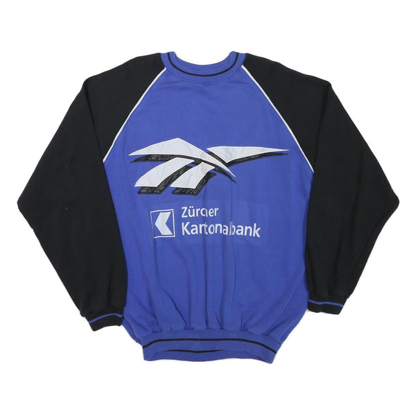 REEBOK Mens Blue & Black Logo Printed Crew Neck L Sweatshirt Cotton Blend