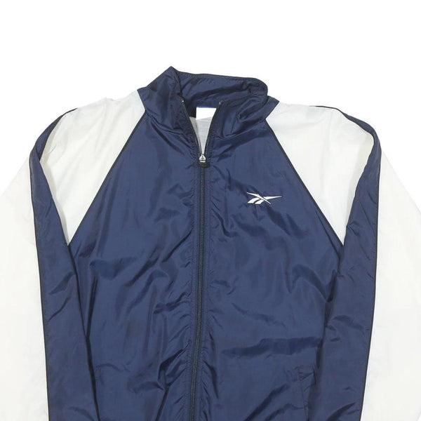 REEBOK Mens Blue & White Track Jacket M Polyester Blend Zip Plain Athletic