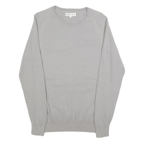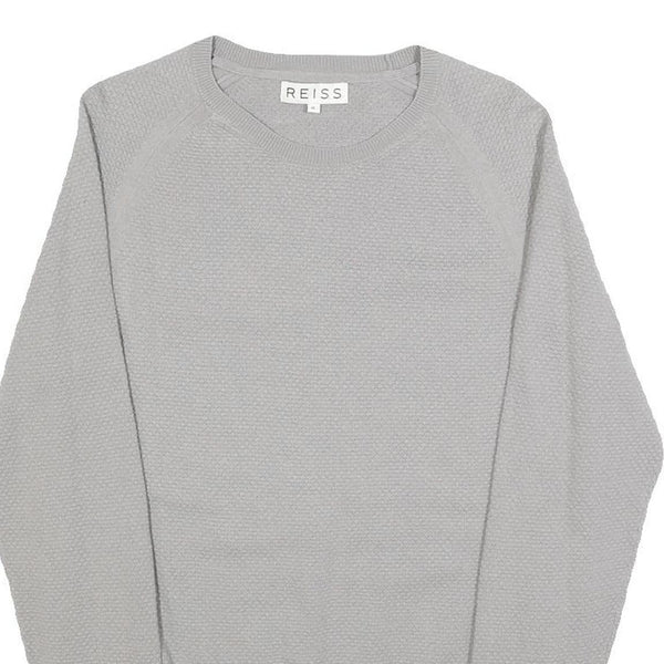 Reiss mens grey wool blend plain crew neck basic knit jumper m casual comfort