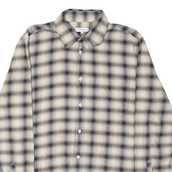 REISS Mens Shirt Grey Plaid Long Sleeve S